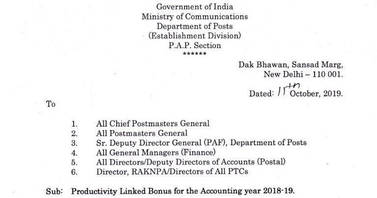 Central Government Employee Bonus News Today 2018-2019 ... . All Updated Messages Of 7Th Pay Commission,Dopt Orders,Expected Da News,Pay Matrix Table,Cghs,Pension And Central Govt Employees News.