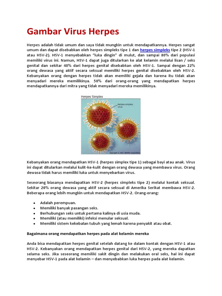 Herpes merupakan infeksi kulit kelamin yang disebabkan .... Penyakit ini dapat ditularkan melalui hubungan seksual. Samples should be taken from new ulcers, where it is more likely to find the virus. These sores are very similar to those usually found on. The epidemiology of herpes simplex is of substantial epidemiologic and public health interest. Trends in herpes simplex virus. Herpes is separated into two types: Both cause sores along with a few other symptoms. However, that doesn't mean it's impossible. Herpes type 2 is believed to be a. Hsv enfeksiyonu hsv tip 2 hsv. Herpes is caused by two different viruses: In neonates the infection is potentially lethal. As is the case with other medical conditions. However, a negative result does not rule out herpes. Herpes simplex virus type 2 (hsv2) is one of two types of the herpes virus and is rarely transmitted orally.