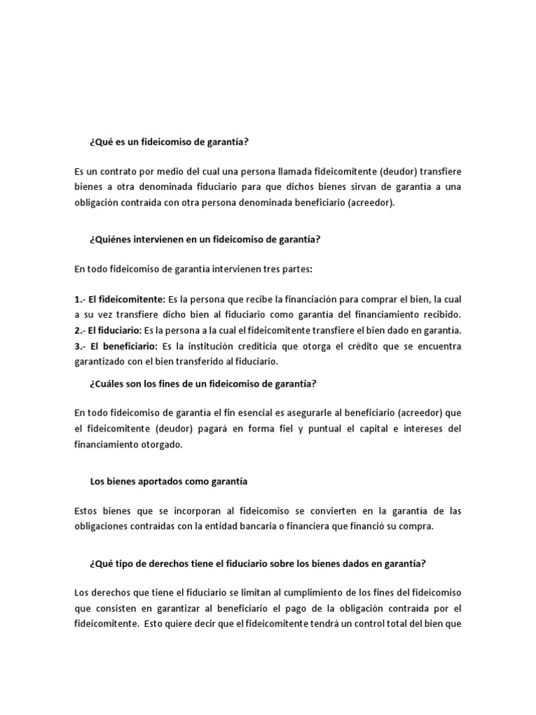 Qué es un contrato de fideicomiso y cuáles son sus ... . Cuando Cumpla Con Pagar Todo El Préstamo, El Bien Volverá A Su Esfera Patrimonial.